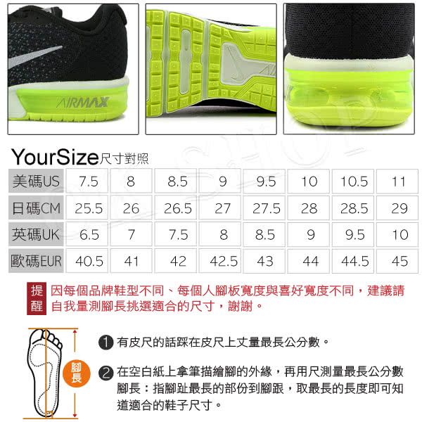 【NIKE 耐吉】sequent 2 男款 AIRMAX氣墊鞋 運動鞋 慢跑鞋 健走鞋 @B3(2461011)鞋子重量會很重嗎尺寸規格要怎麼看